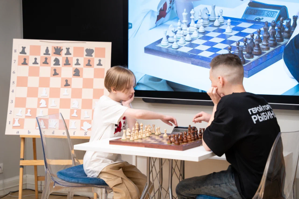 В рамках мастер-класса прошла показательная партия с участием известных шахматистов: чемпионка мира по рапиду и блицу Алиса Юнкер и чемпион мира среди школьников, победитель первенства Азии Глеб Щеглов.