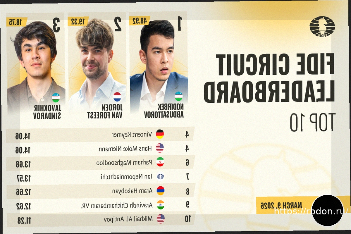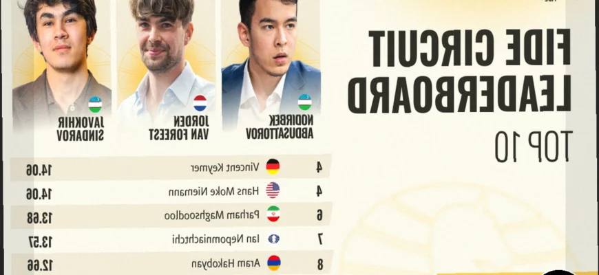 Надирбек Абдусатторов значительно укрепил свои позиции в турнирной серии FIDE Circuit 2026-27 после убедительной победы на Мастерсе Пражского международного шахматного фестиваля, что принесло ему 23,14 очка в зачет. Узбекский гроссмейстер завоевал свой второй крупный титул в 2026 году и теперь имеет преимущество почти в 20 очков над Иорданом ван Форестом, занимающим второе место. Ван Форест также успешно набрал очки как в Вейк-ан-Зее, так и в Праге.