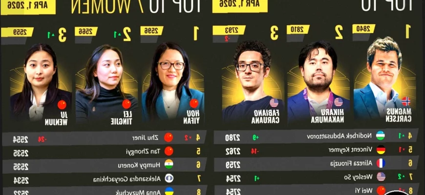 Апрельский рейтинг-лист ФИДЕ за 2026 год сформировался в основном благодаря результатам таких крупных соревнований, как Пражский международный шахматный фестиваль, Аэрофлот Опен, Мемориал Агзамова, KazChess Masters, а также командным турнирам, проходившим по всей Европе.