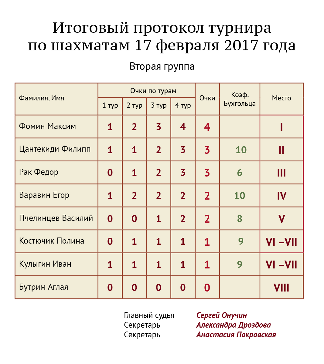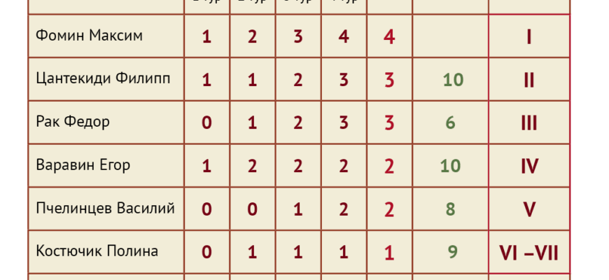 - 1. Алексей Жерновой – 8,5 очков