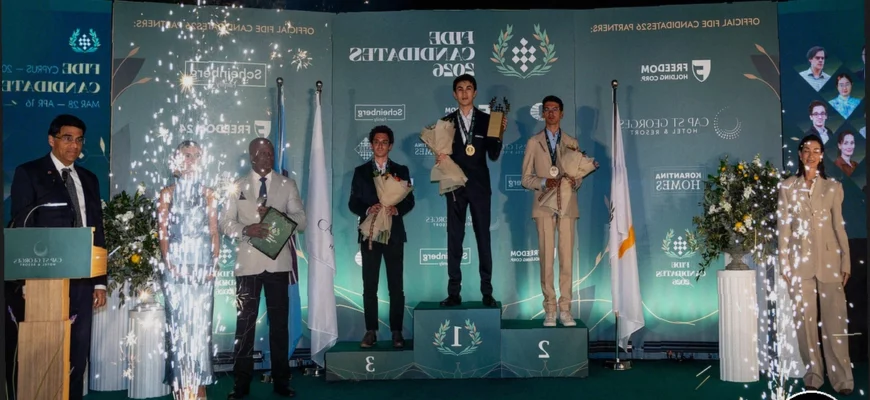 Церемония закрытия турнира претендентов 2026 года на Кипре собрала вместе игроков, организаторов и гостей после более чем двух недель напряженных соревнований. Вечер, проходивший в отеле St. George’s Hotel & Resort, объединил музыку, танцы и вручение наград, увенчавшись чествованием Вайшали Рамешбабу и Джавохира Синдарова как победителей женского и открытого турниров соответственно.
