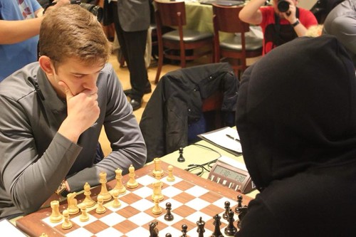 Р.Ш.: В пятом раунде, когда я играл черными против Марчина Петрушевского из Польши, мы разыграли отказанный ферзевый гамбит. Я начал яростную атаку на королевском фланге, продвинул пешку на h3 и поставил ему мат – это была классическая, спортивная концовка.