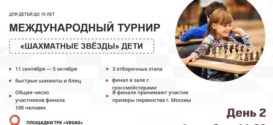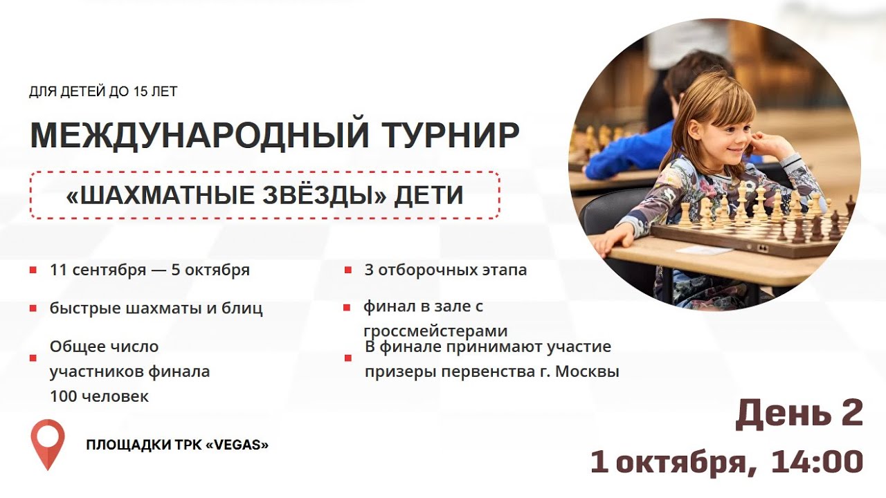Второй отборочный этап детского шахматного турнира «Шахматные звезды 5.0» состоялся 1 июня в Хорошколе, г. Москва. По итогам соревнований были определены участники, прошедшие в финал.